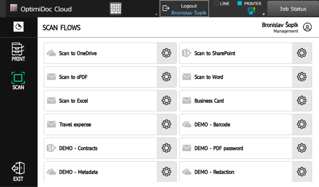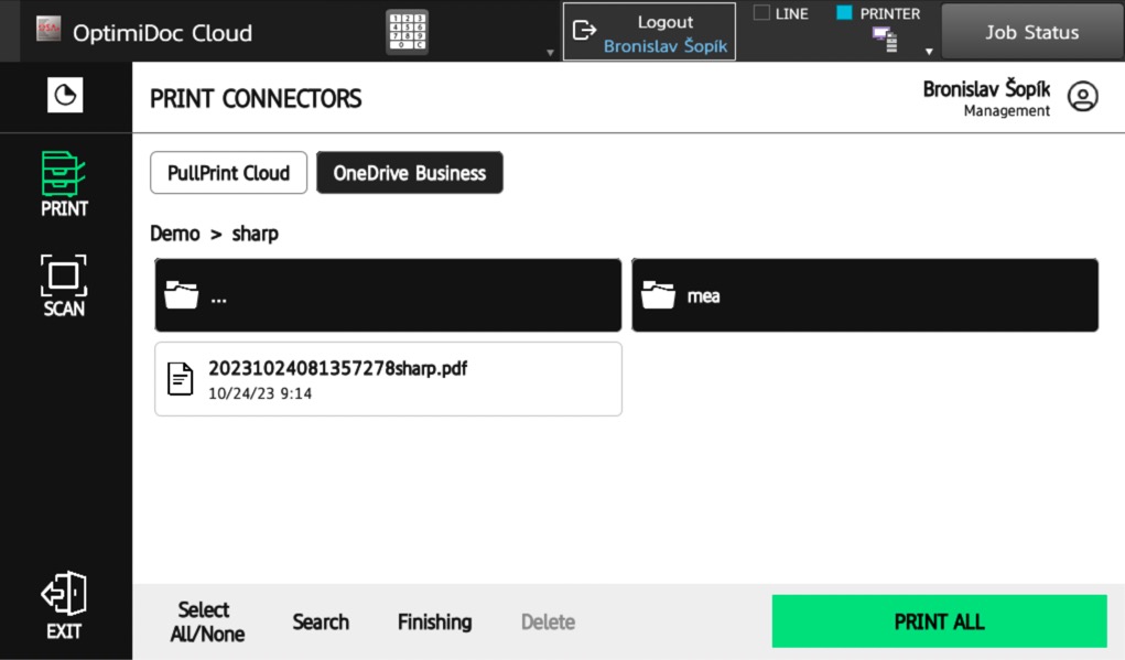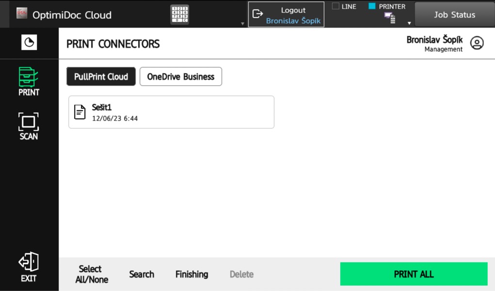 The user prints their documents and they will wait securely at cloud datecentre until they are requested from a specific printer. In addition to pull printing, OptimiDoc Cloud allows printing from OneDrive or SharePoint directly from the device panel. With job monitoring, the business has a detailed overview of print device usage.